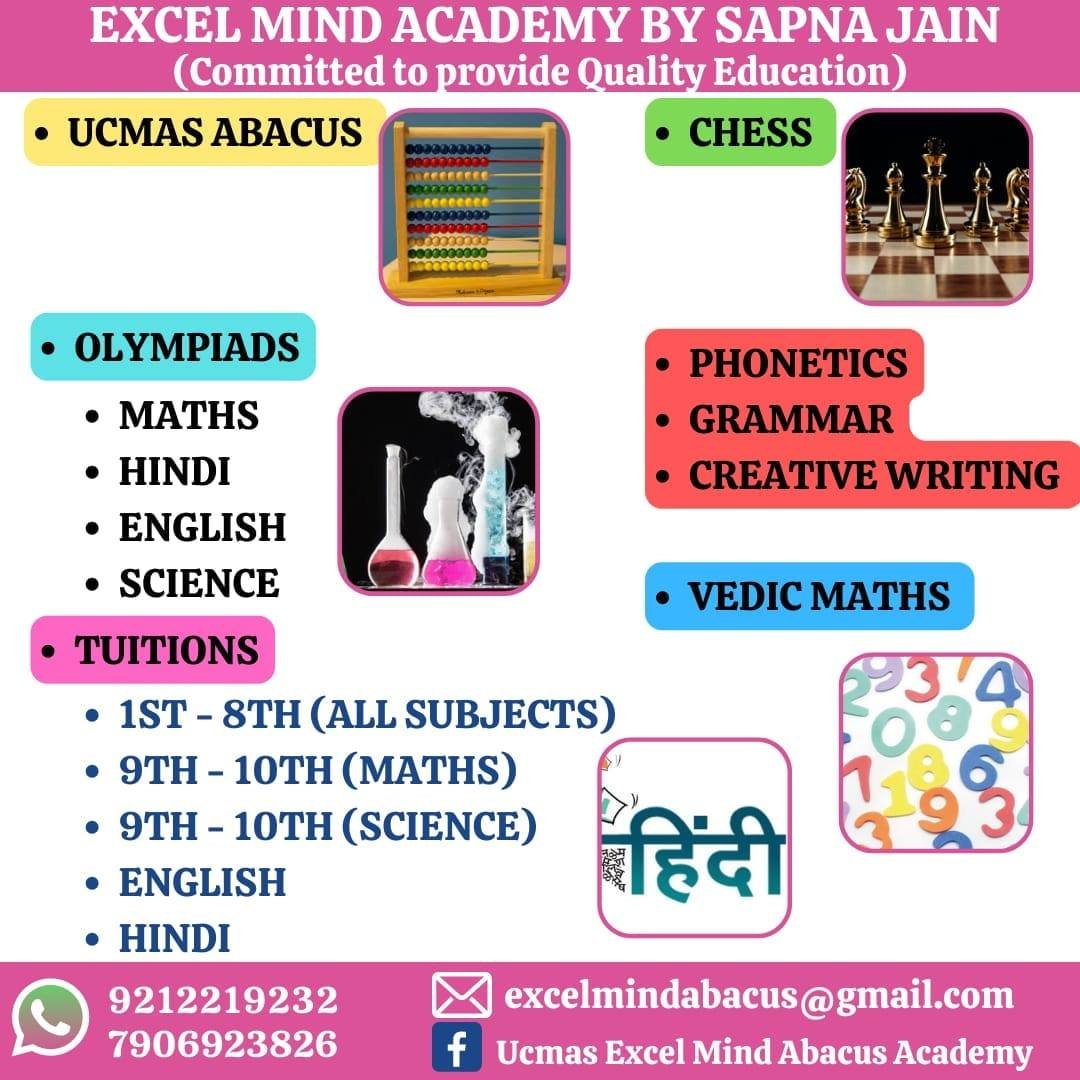 We at Excel Mind Academy are committed to setting up your child for success in the future. We provide a broad range of coaching classes because we recognise that a strong educational foundation is essential to their success. Our comprehensive study programme includes English-Hindi proficiency lessons, Abacus, Vedic Maths, and specialised training for Olympiad examinations, such as the best English Olympiad for class 10 in Delhi, in addition to tuition for kids in grades 1 through 10.